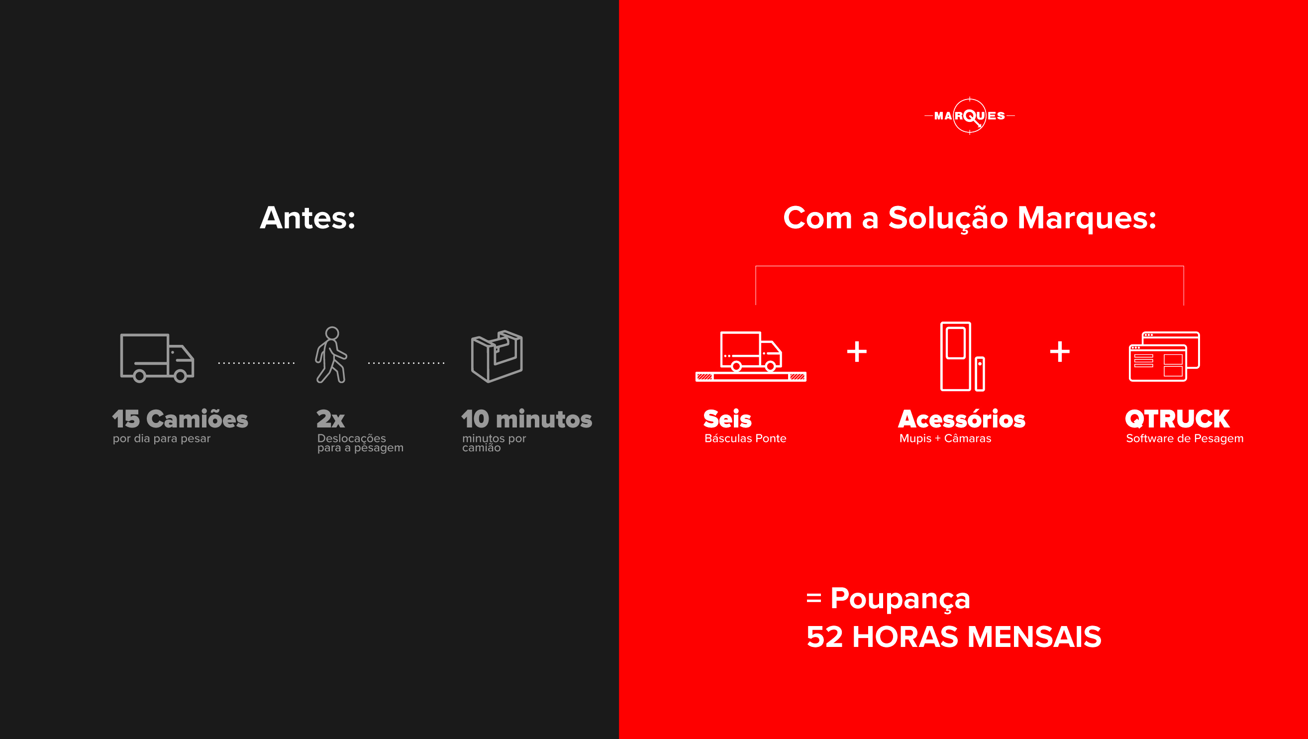 Reconhecidas no setor pela robustez, precisão e tecnologia avançada, as nossas básculas-ponte trabalham hoje em conjunto com os nossos mupis e o software QTruck, também desenvolvido por nós, para ajudar a empresa a manter o controlo sobre todo o processo logístico.